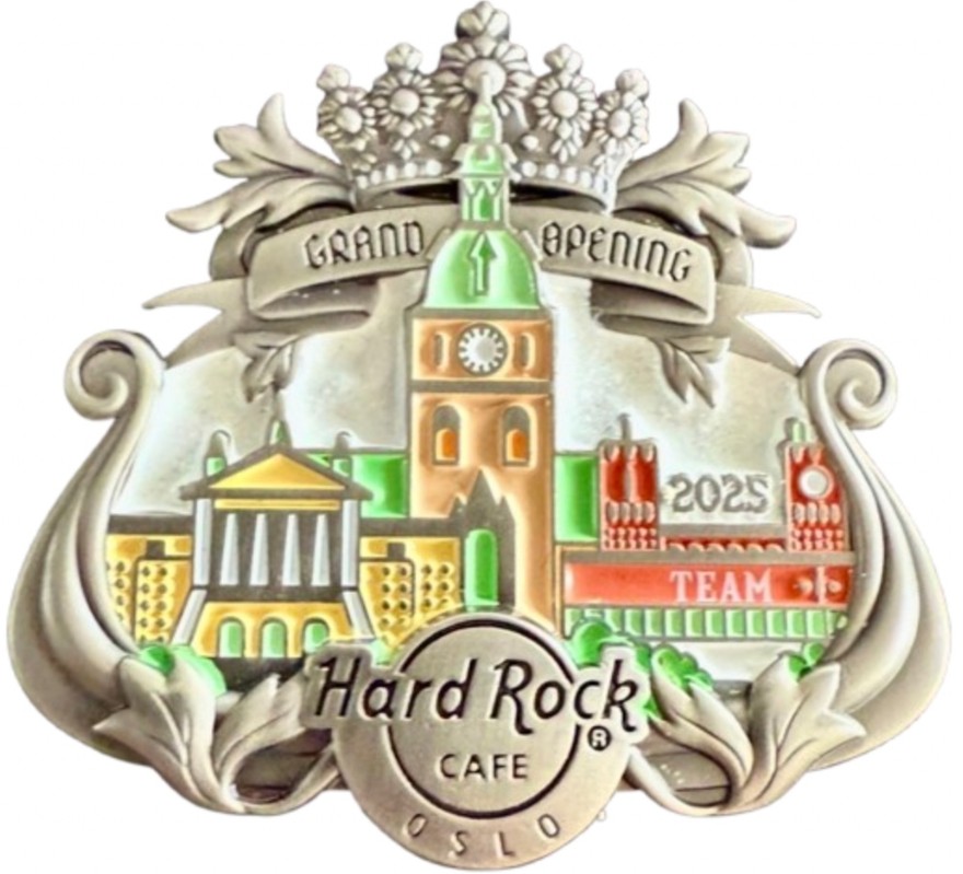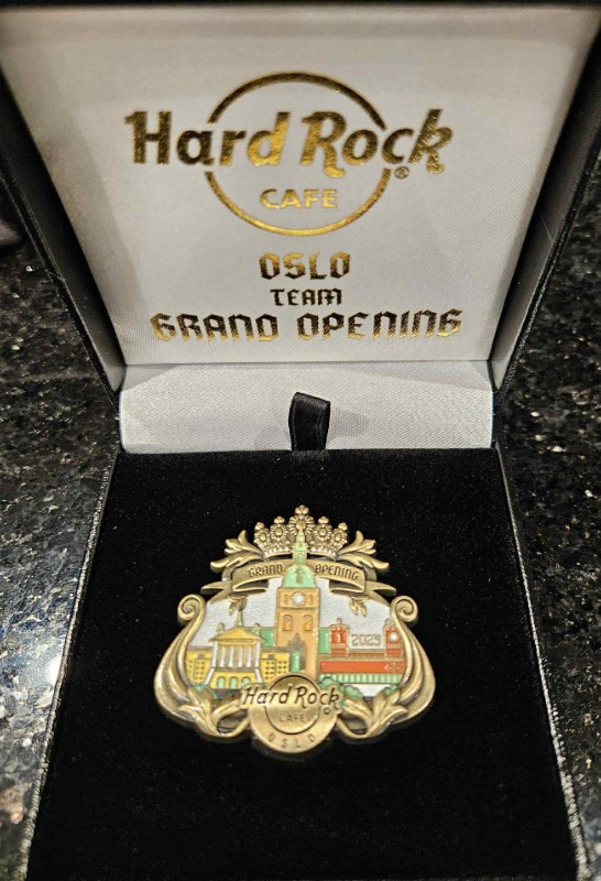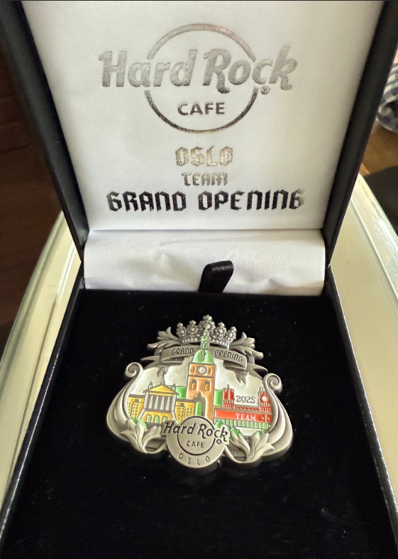 4linjers tekst, Hard Rock logo og diagonale gitarer, Sølvvalør, Levert i samleboks. STAFF utgitt til ansatte. |