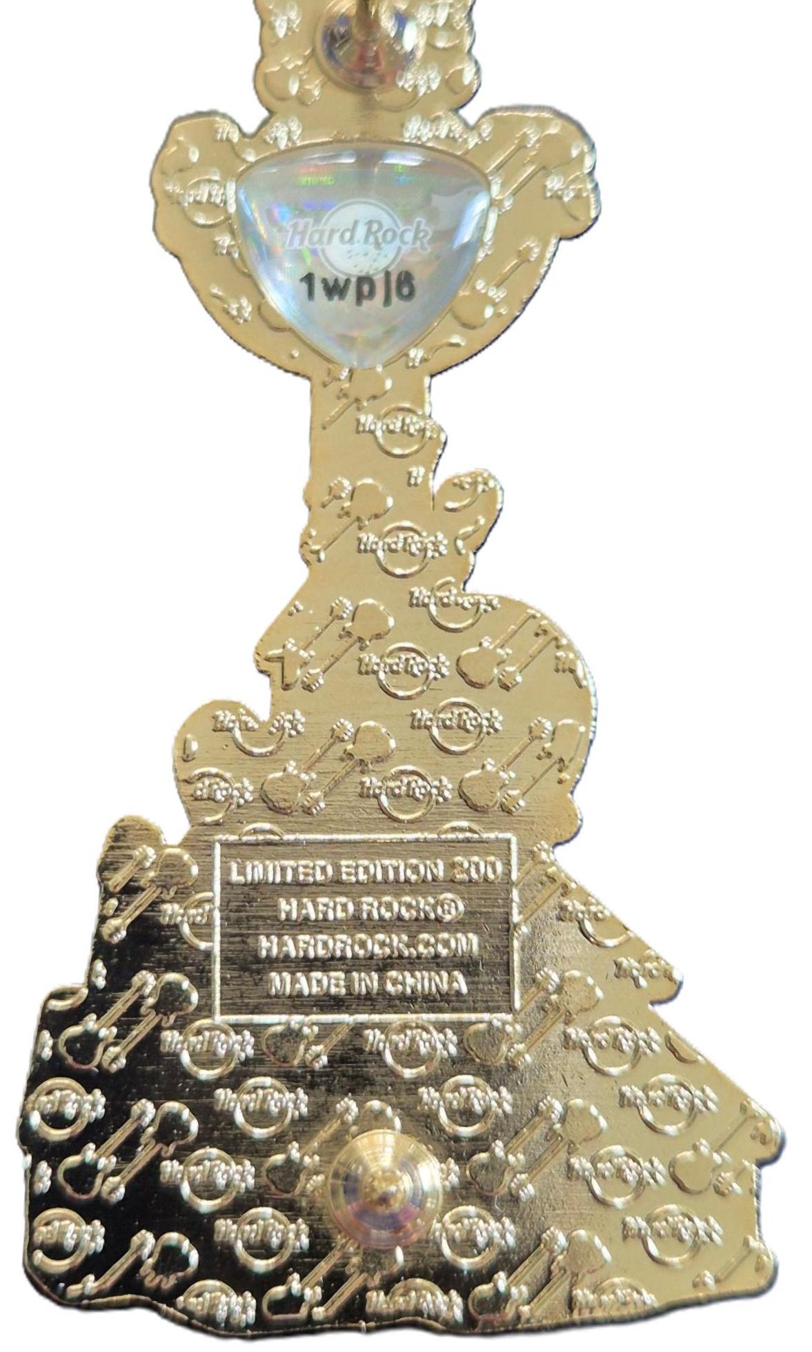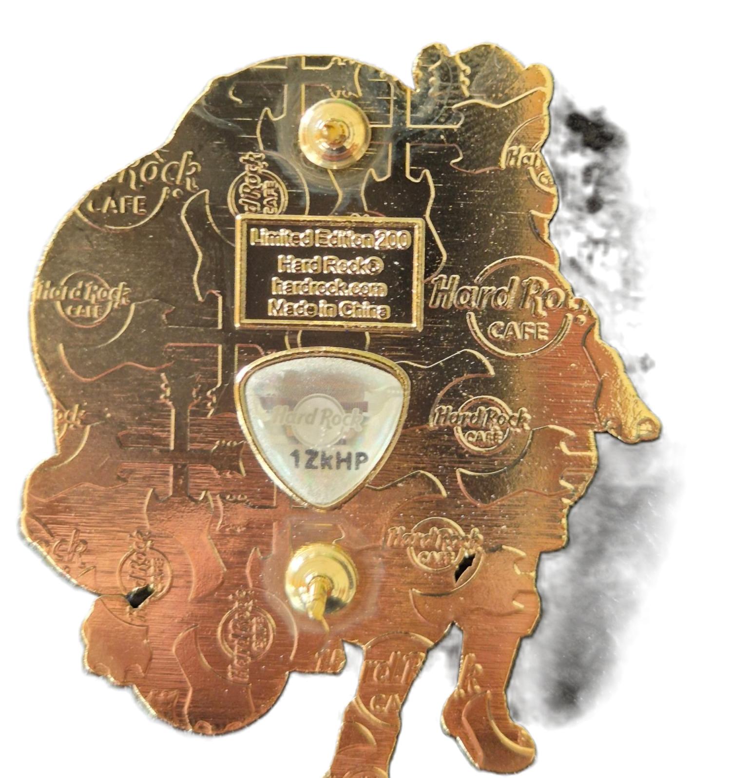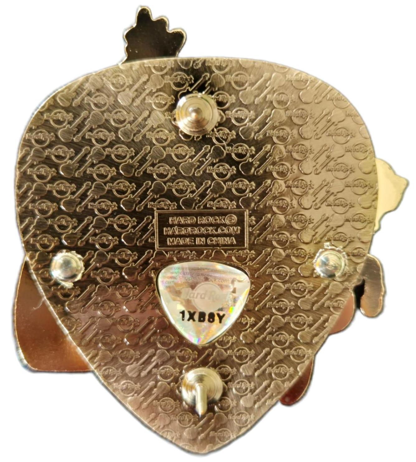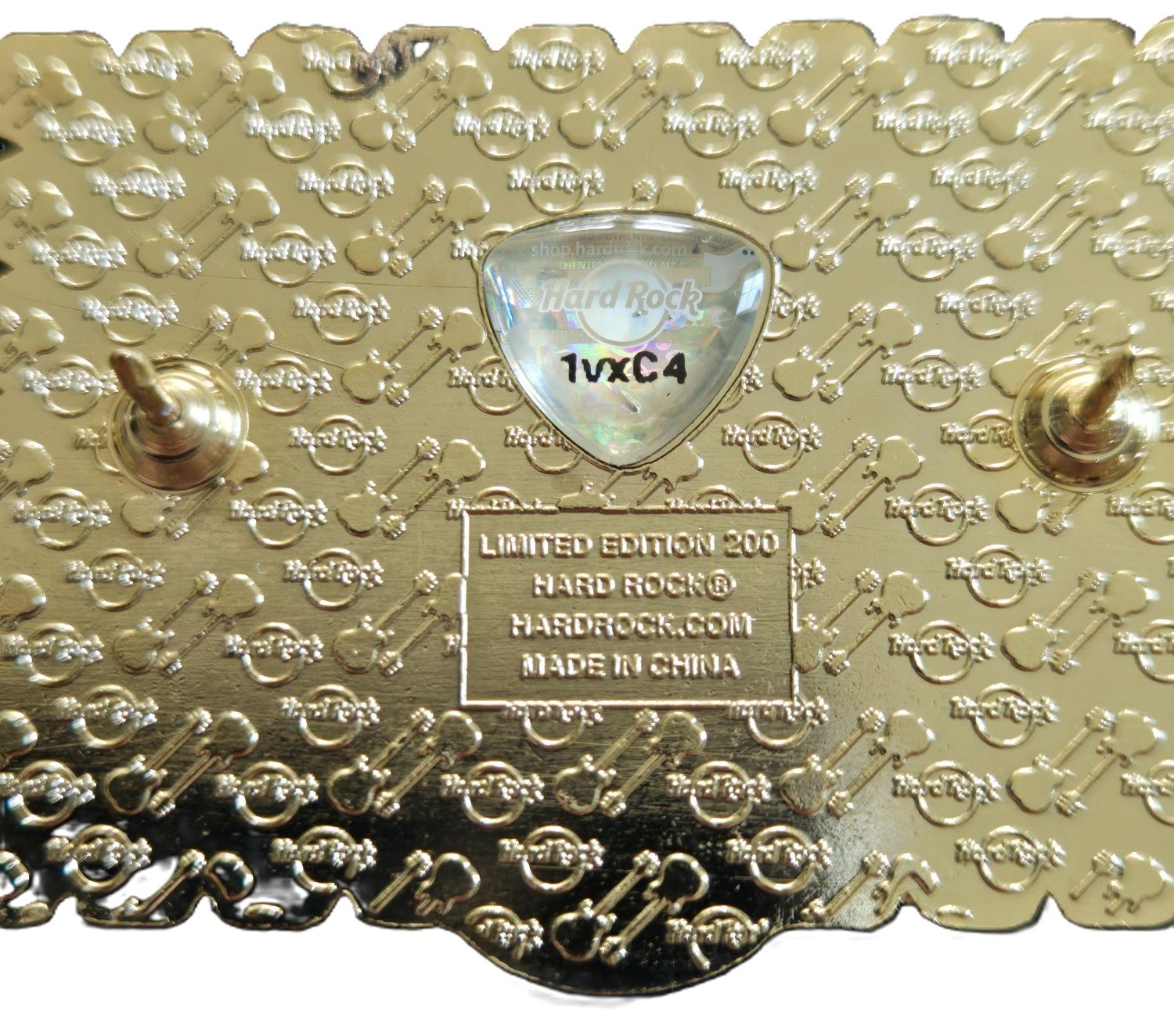 4linjers tekst, Hard Rock logo og diagonale gitarer, Gullvalør, Levert i samleboks |