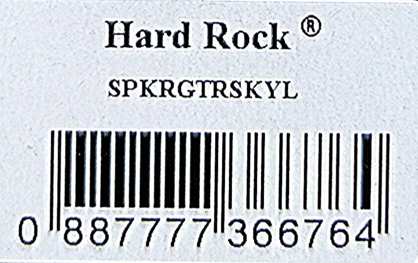 4linjers tekst, Hard Rock logo og diagonale gitarer, Gullvalør |
